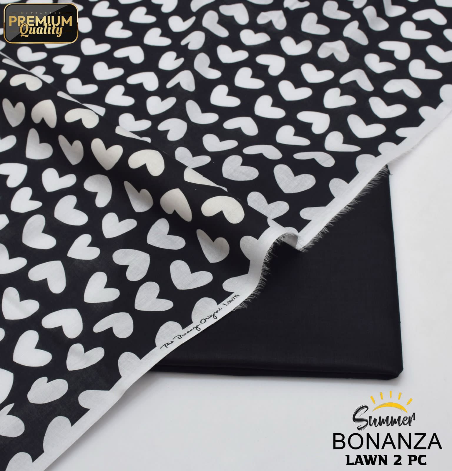 Bonanza | Lawn 2pc | Black & White Hearts