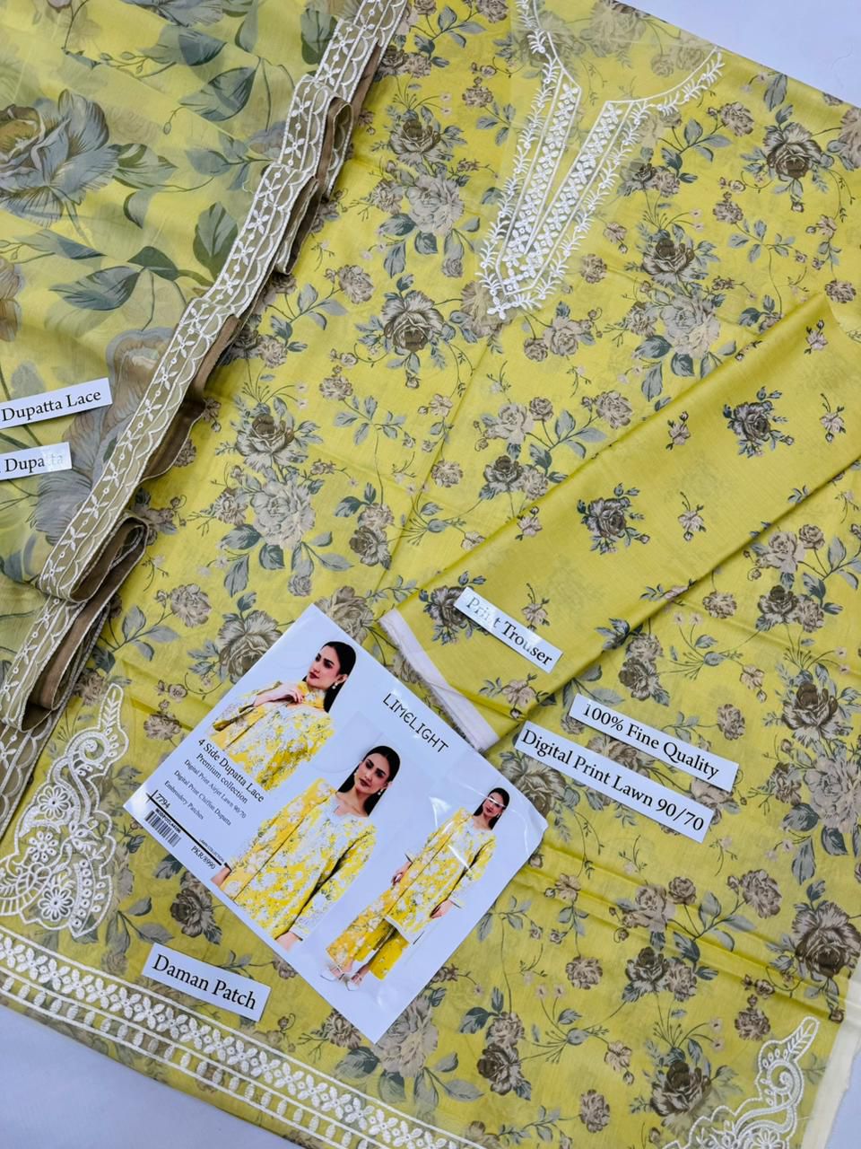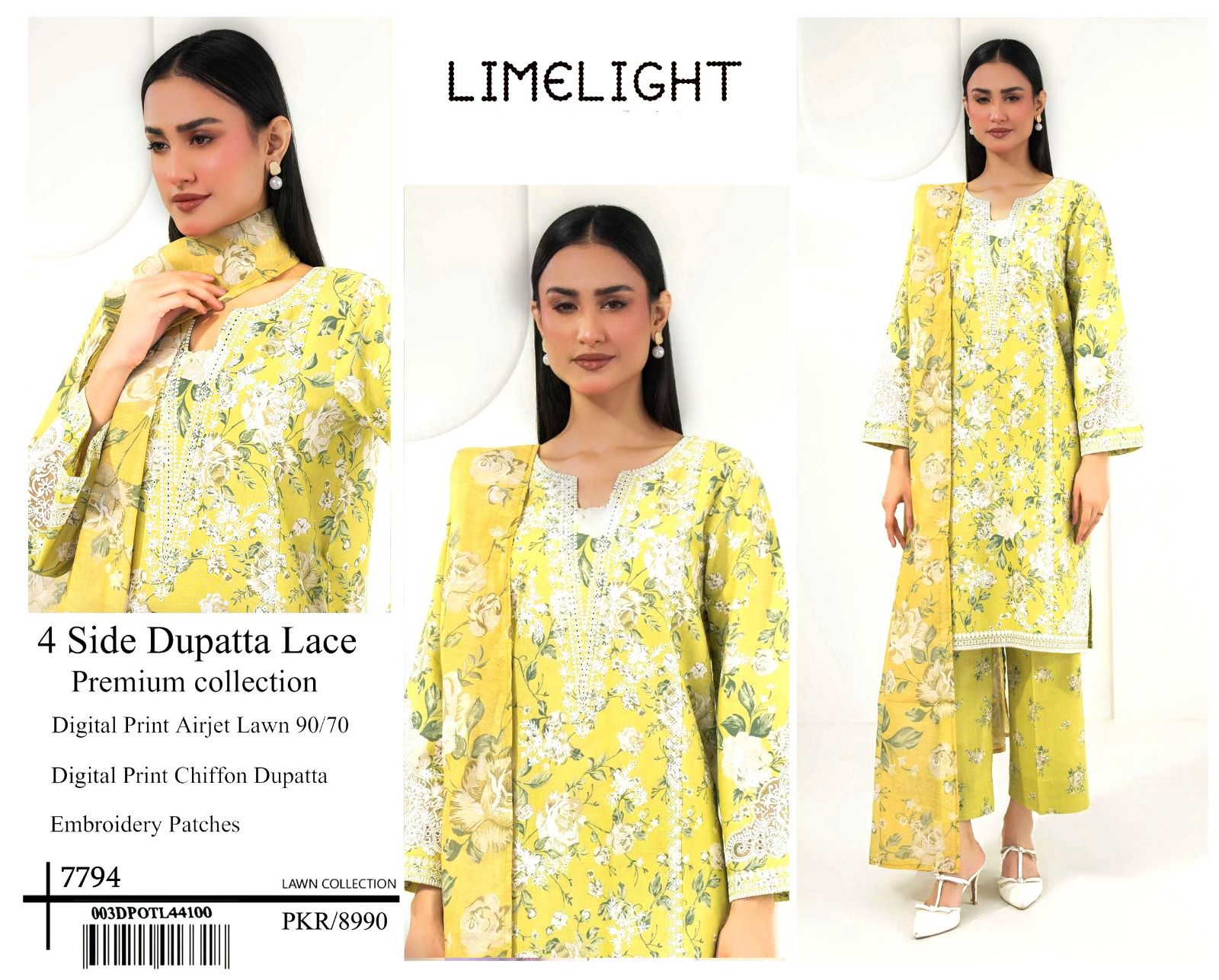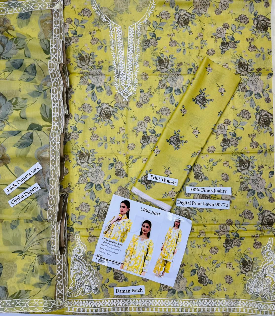 Limelight | Lawn Embroidered 3pc | Lime & Cream Rose