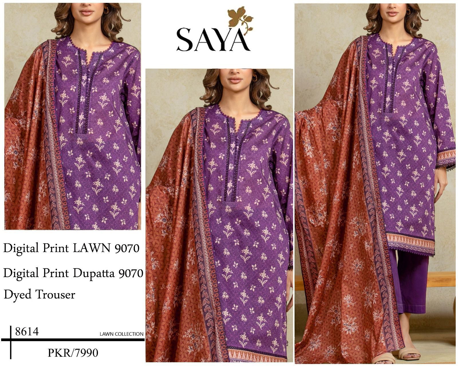 SAYA | Lawn 3pc | Plum Purple & Rust Floret