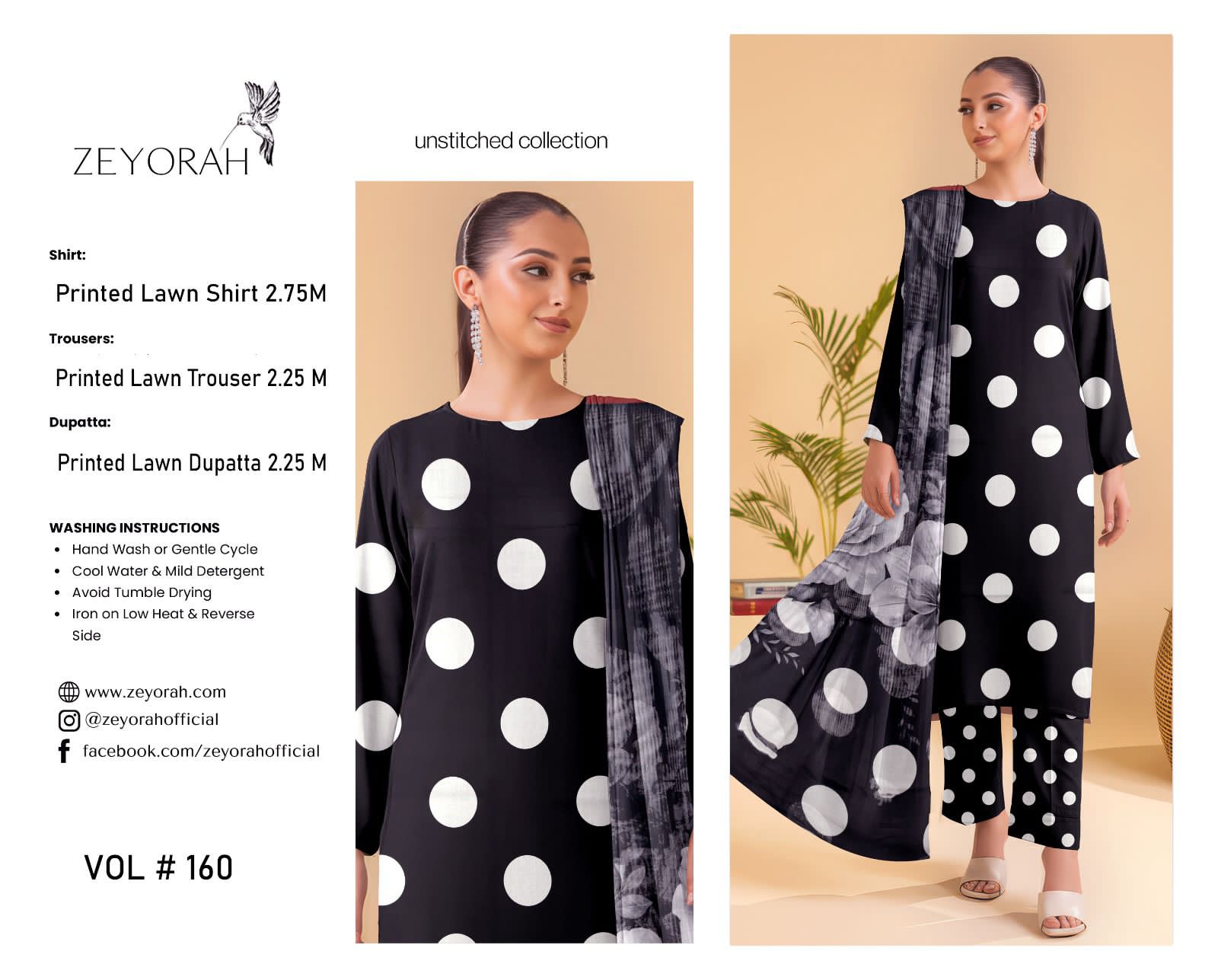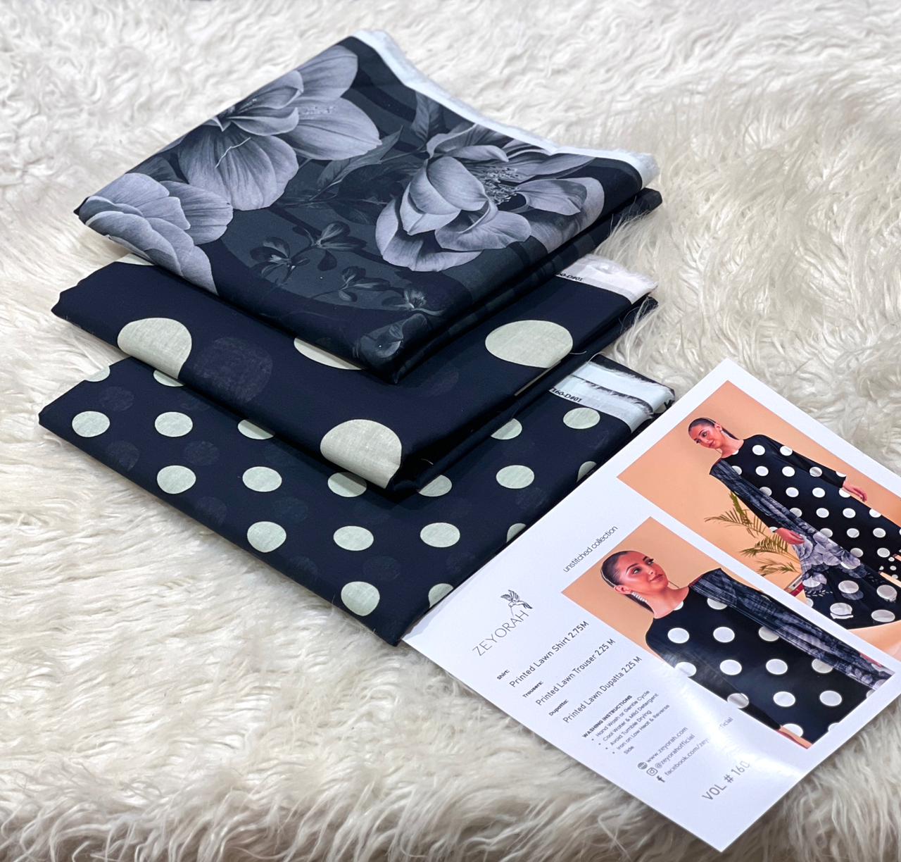 Zeyorah | Lawn 3pc | Black Bold Polka Dot