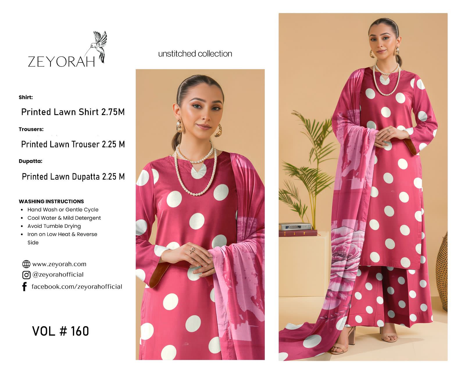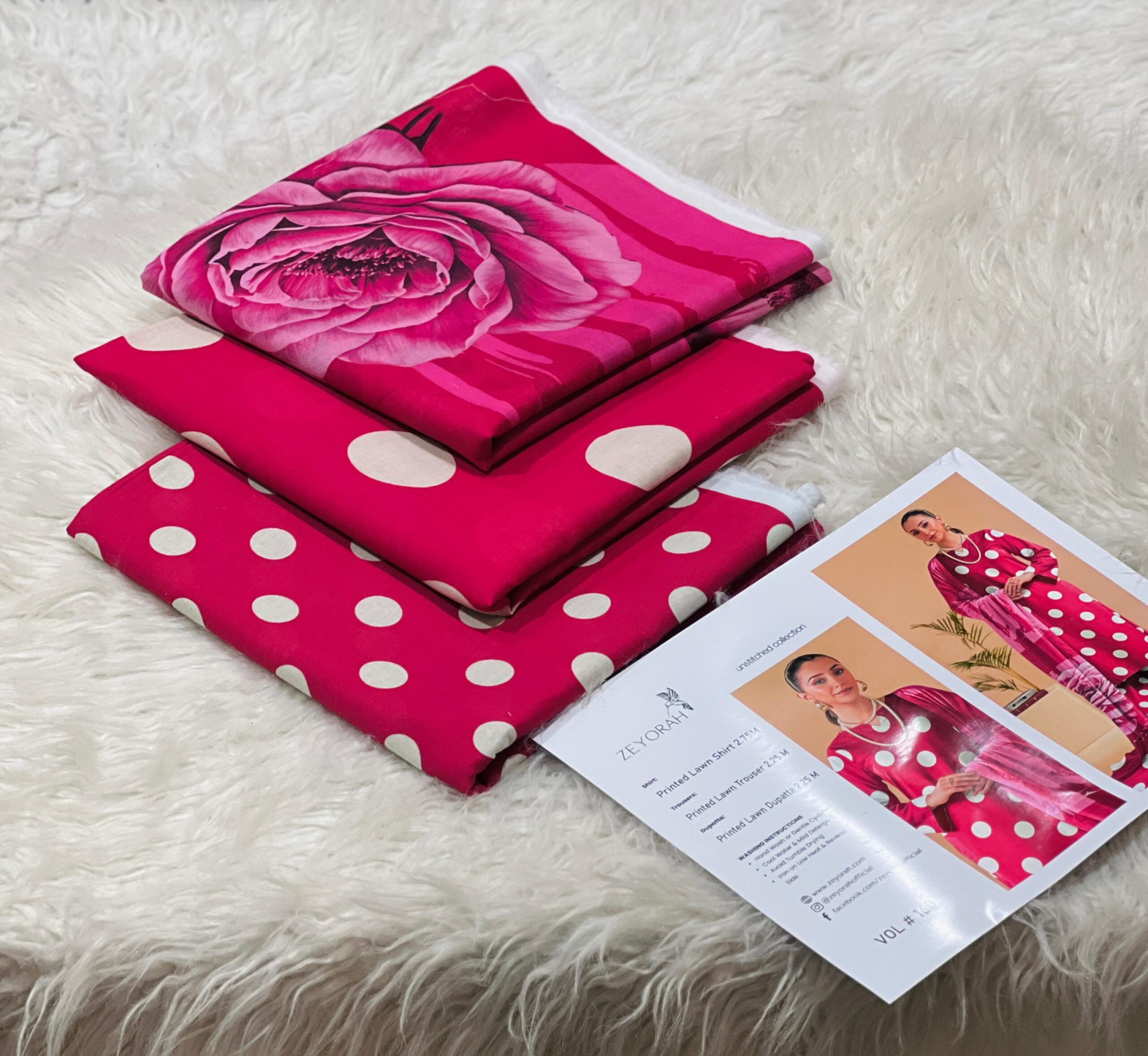 Zeyorah | Lawn 3pc | Magenta Pink Bold Polka Dot